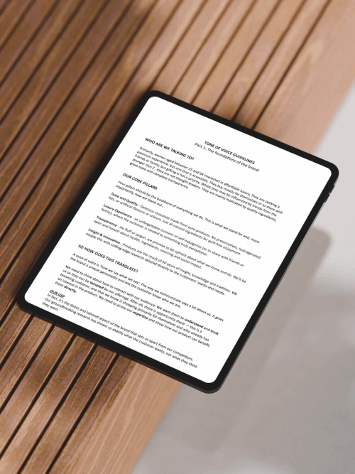 Audience, tone, USP, and key messages captured in a document your team can return to for consistency, confidence, and credibility.